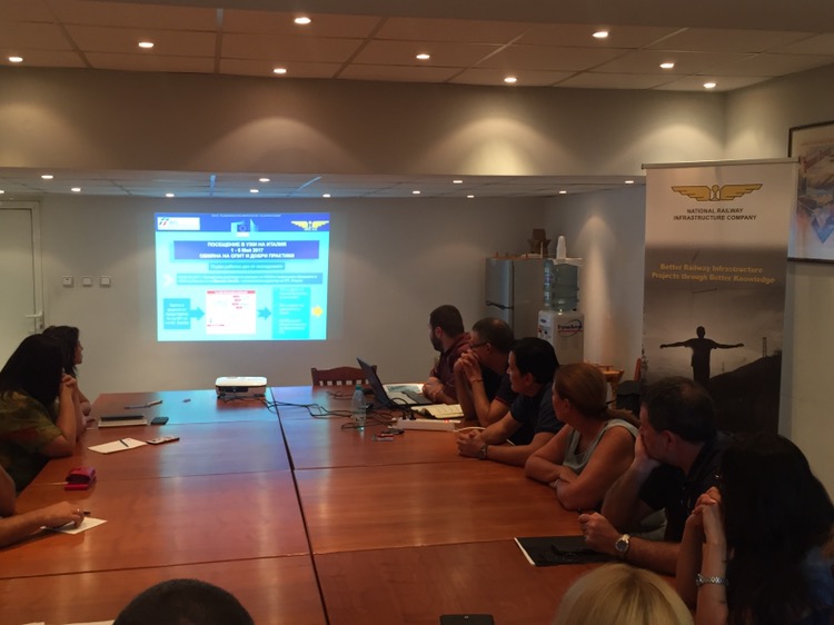 На 17 август 2017 г., в сградата на Централно управление на ДП НКЖИ, се проведе информационен ден за състоялото се в периода 1-5 май 2017 г. посещение на група български експерти в УЖИ на Италия (RFI), гр. Рим, във връзка с изпълнението на дейност 1 по проект „По-добри железопътни проекти чрез по-добри познания“, финансиран по МСЕ. Информационният ден имаше за цел служителите от дирекция СРИП и от Звената за подготовка, управление и изпълнение на проекти, както и от други структурни звена на компанията да се запознаят с резултатите от проведените срещи, обменения опит и добри практики от посещението в Италия.