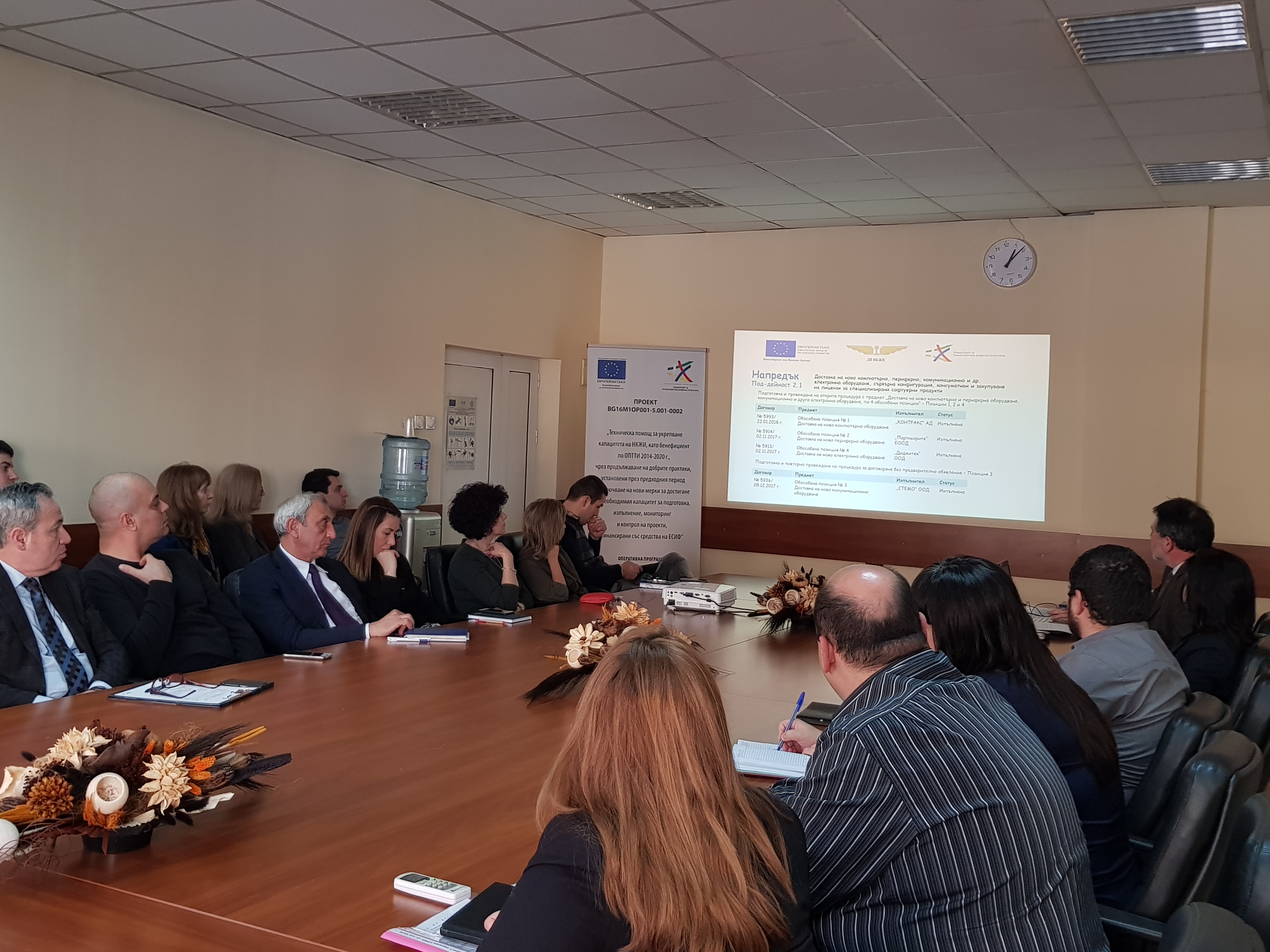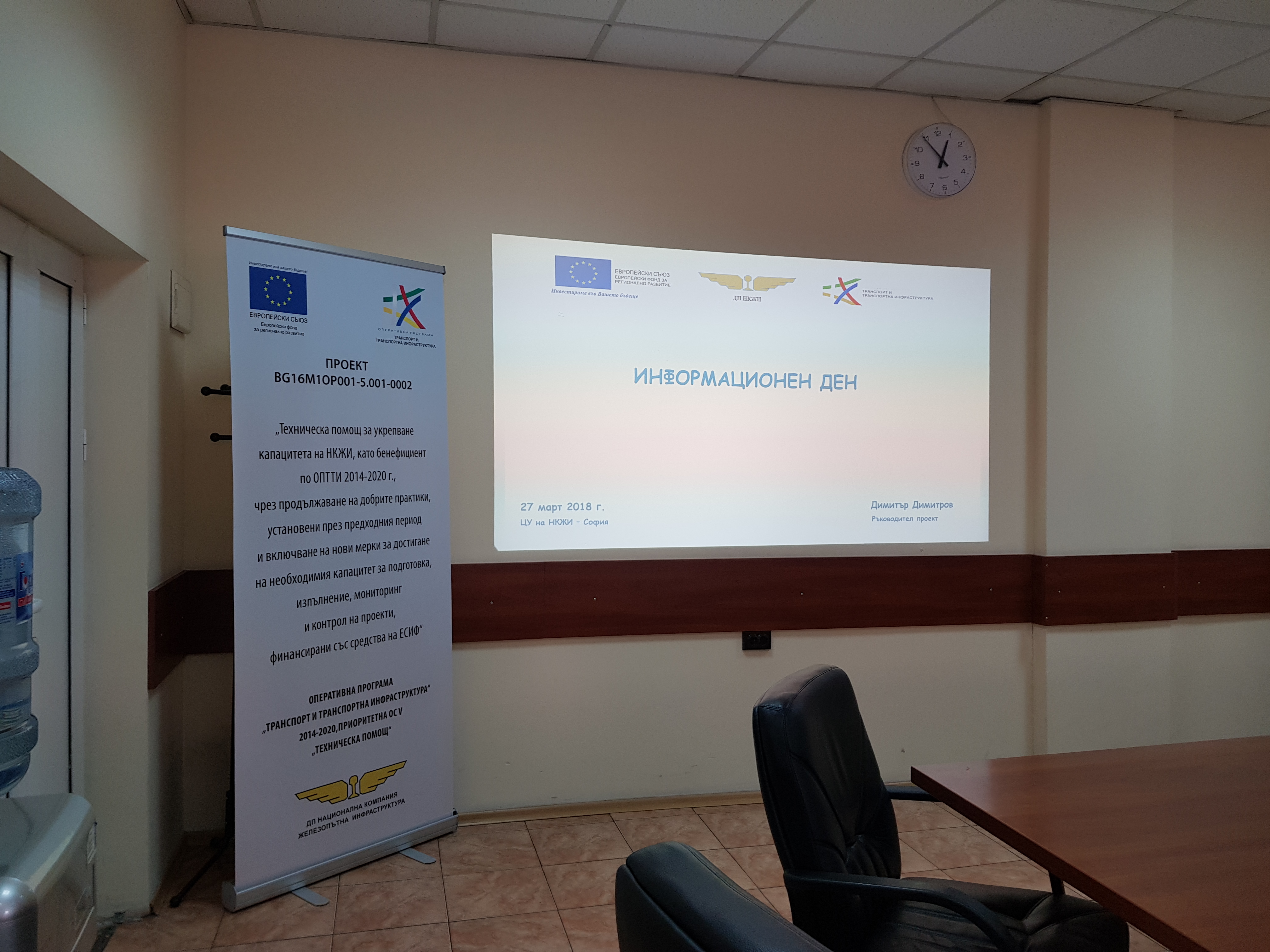 На 27/03/2018 г. в сградата на Централното управление на НКЖИ се проведе информационен ден, свързан с междинното изпълнение и постигнатите резултати по проект BG16M1OP001-5.001-0002 „Техническа помощ за укрепване капацитета на НКЖИ като бенефициент по ОПТТИ 2014-2020 год. чрез продължаване на добрите практики, установени през предходния период и включване на нови мерки за достигане на необходимия капацитет за подготовка, изпълнение, мониторинг и контрол на проекти, финансирани със средства на ЕСИФ“.