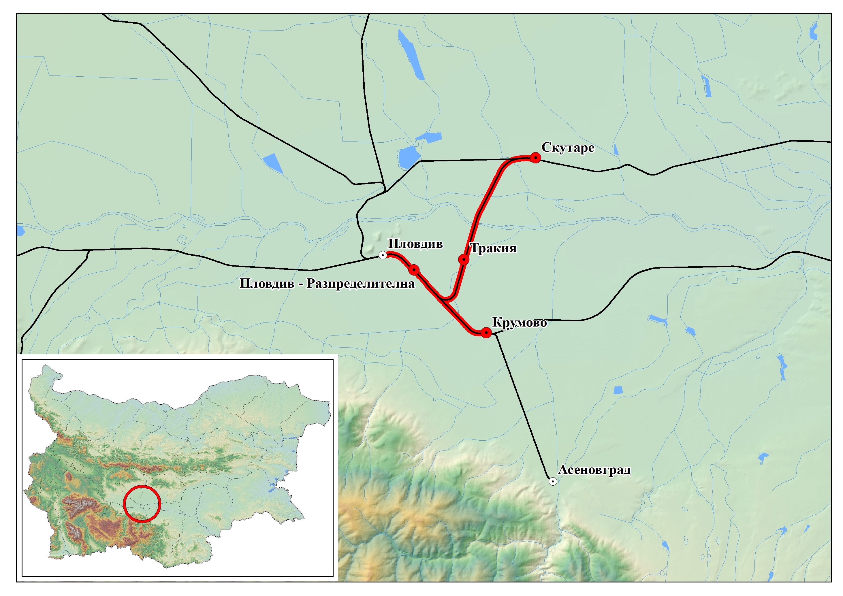 Обект „Модернизация на железен път, контактна мрежа и системи за сигнализация и телекомуникации в железопътни участъци Пловдив-Крумово и Пловдив–Скутаре, включително в гарите Пловдив разпределителна, Крумово, Скутаре и разделен пост Тракия“ е част от проект „Развитие на железопътен възел Пловдив“ и се съфинансира със средства по Механизма за свързване на Европа (МСЕ).